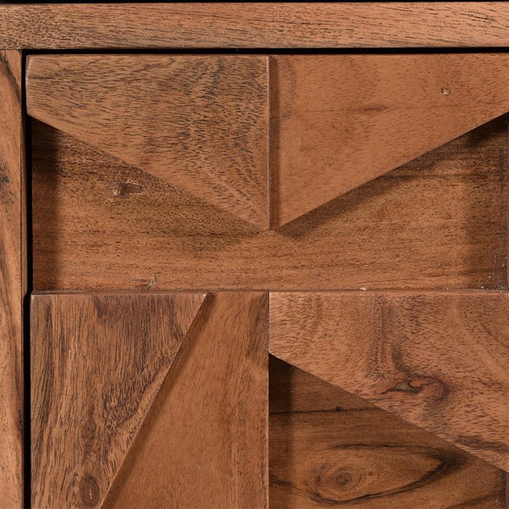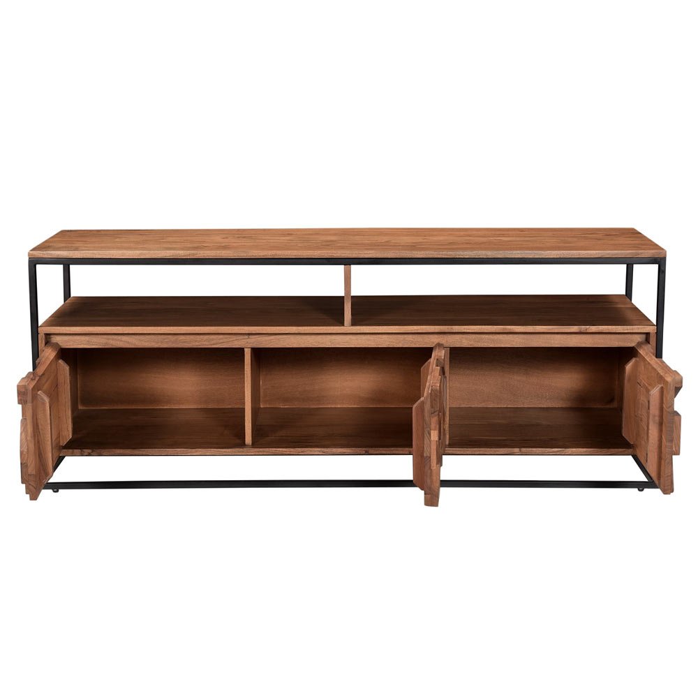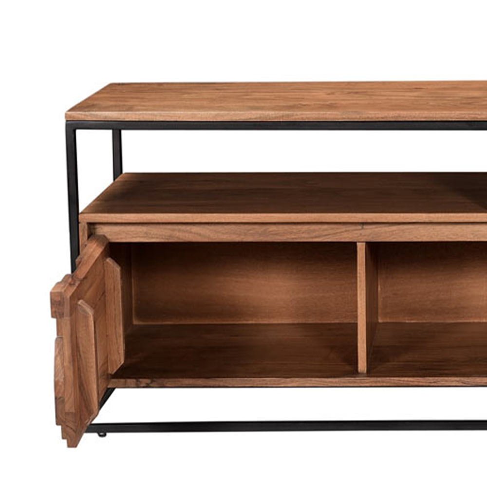 The Atticus range has a cool loft living vibe with its bold metal framing and carved Acacia wood. The block design is carved in such a way to offer different levels and shapes to allow the light to highlight different sections creating a unique conversation piece.
