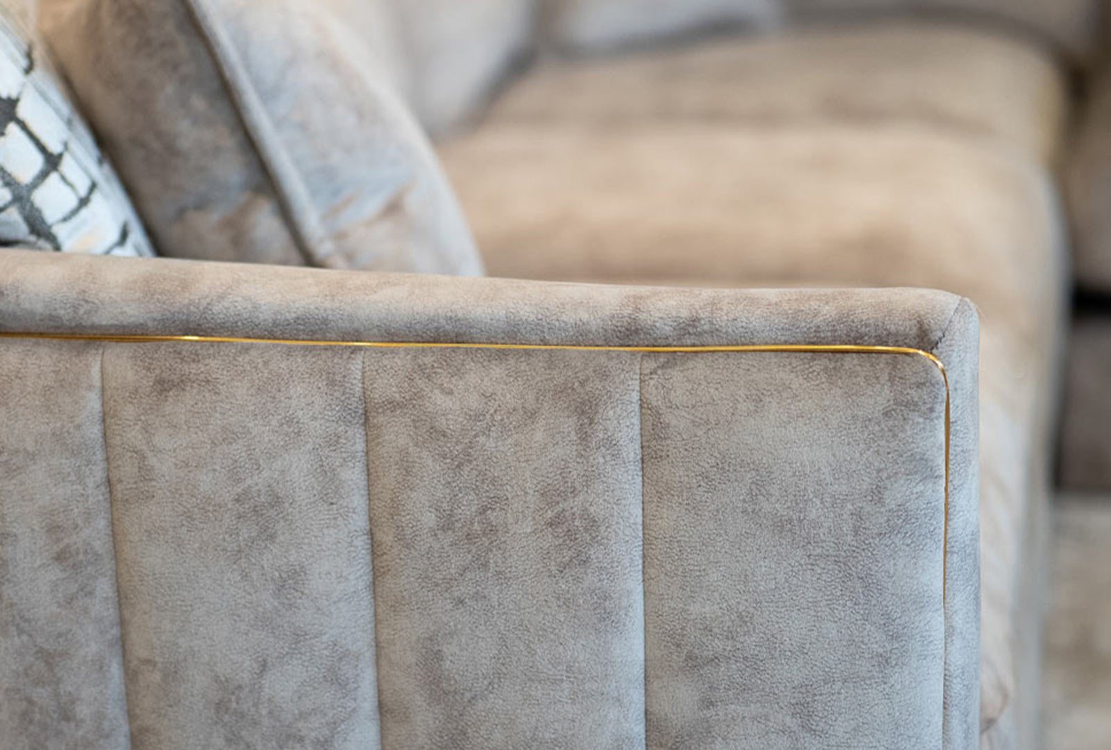 The Bella offers the ultimate in comfort and style with its eye catching intricate design details. Ribbed fabric end panels and striking metal piping details give this range a sophisticated contemporary look. The Bella is available in a selection of ultra soft fabric combinations. Constructed with a Harwood frame, fibre filled reversible backs, foamflex interior, serpentine seat springs and silent wire. Made in the UK.