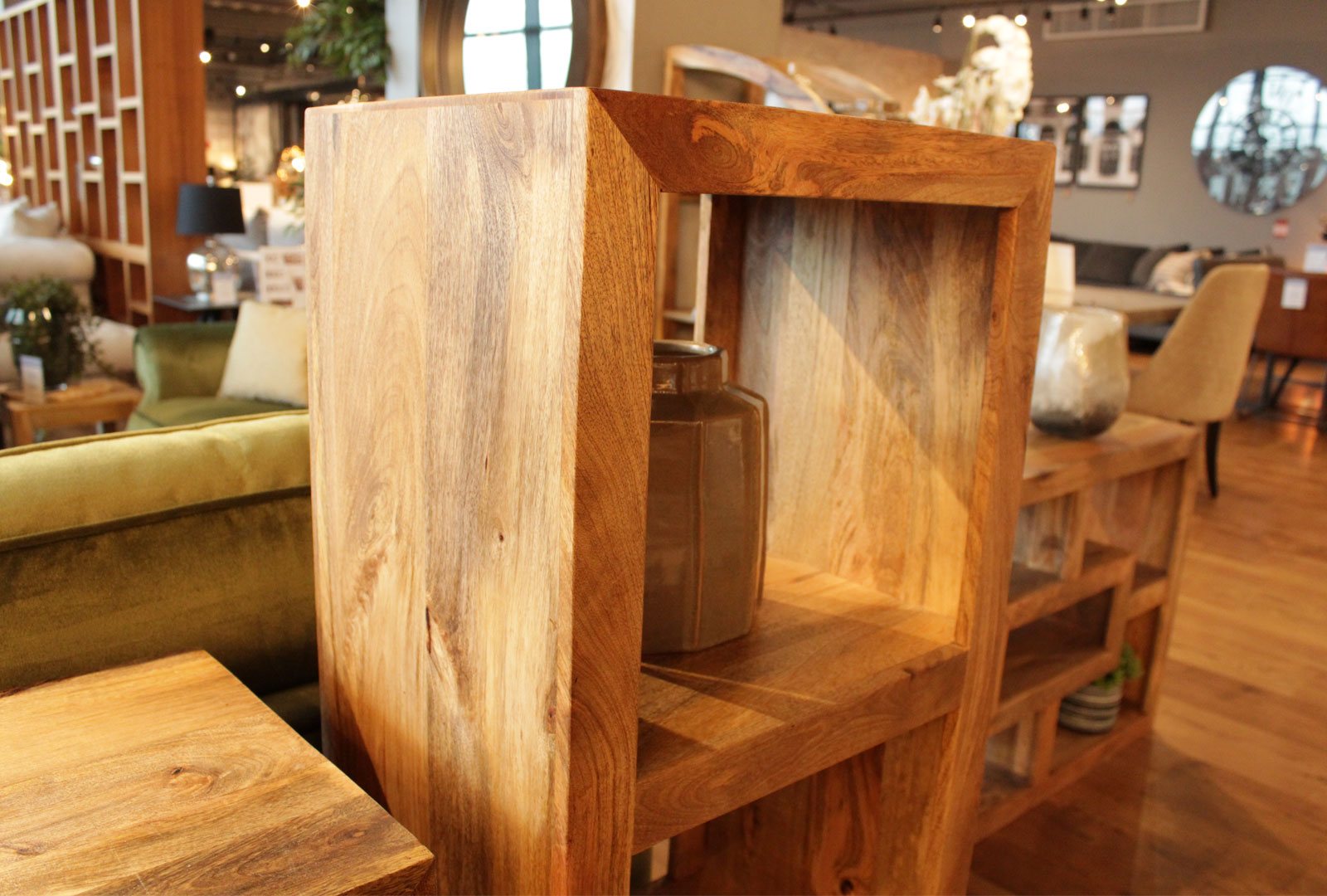 Images show Cuban Cube Shelving Unit in Mango, Rosewood and Sheesham wood.