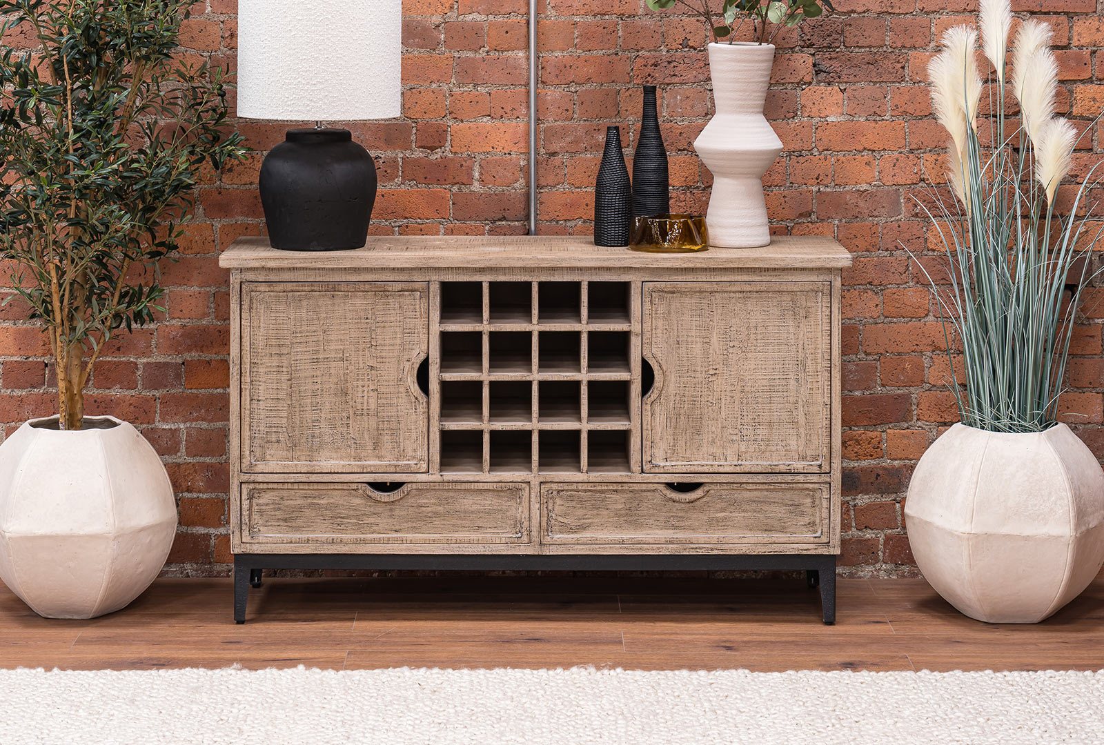 - A rustic sideboard with wine rack that suits a variety of home styles