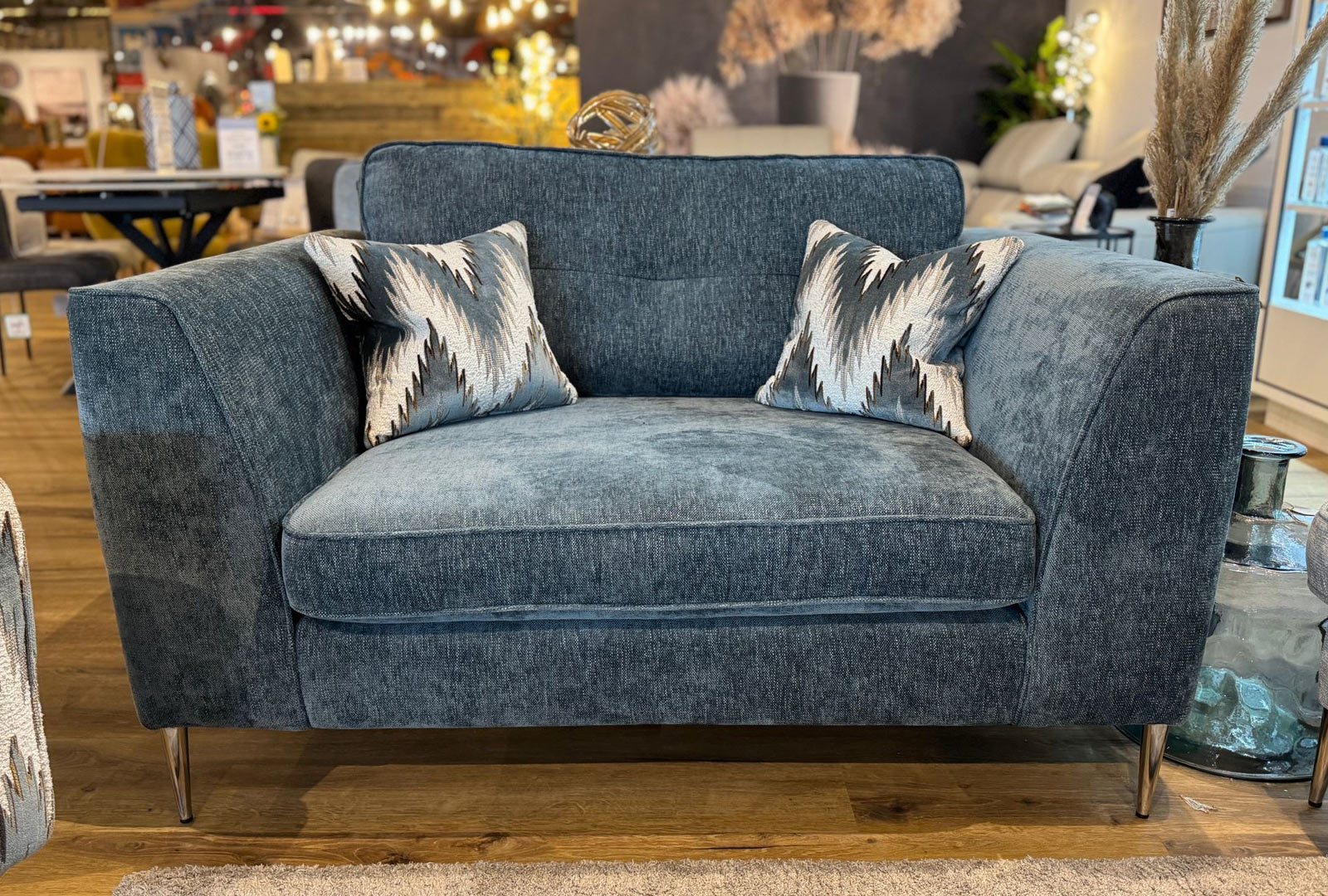 - Seat: Traditional sinuous zig-zag springs covered with foam