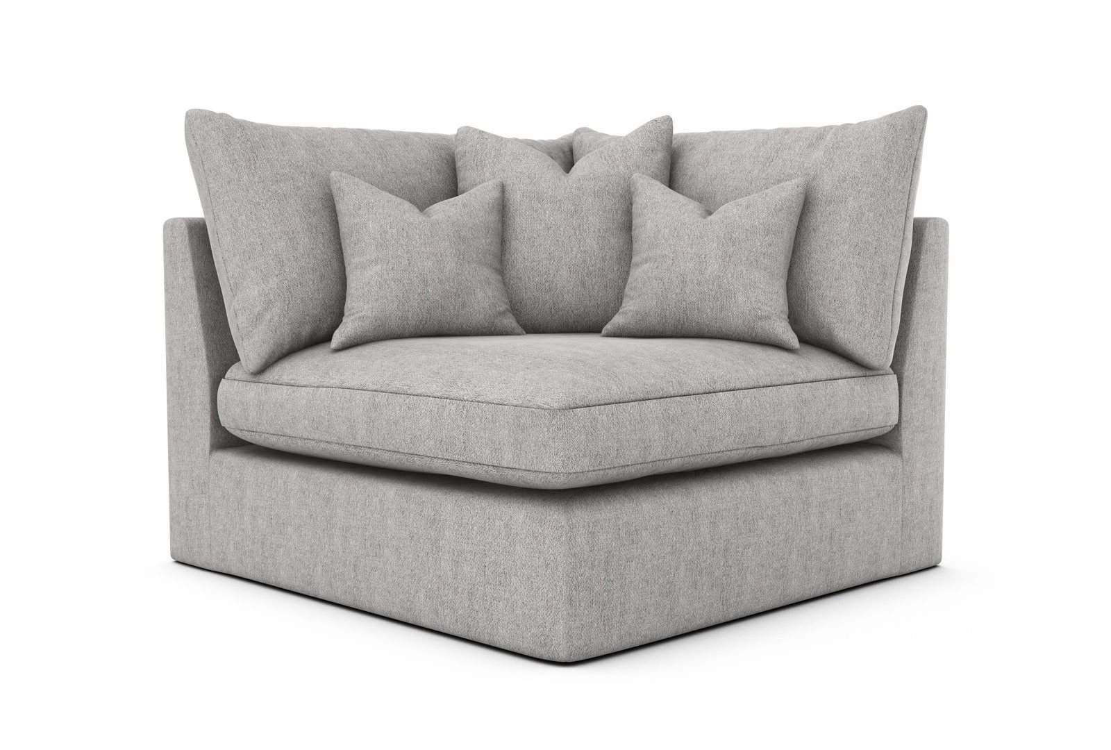A feather-topped foam core delivers cloud-like comfort with a sink-in, bounce-back feel, while the low-slung profile pairs a deep, wide corner seat with a plump, fibre-filled back cushion, softened by gently rounded edges.