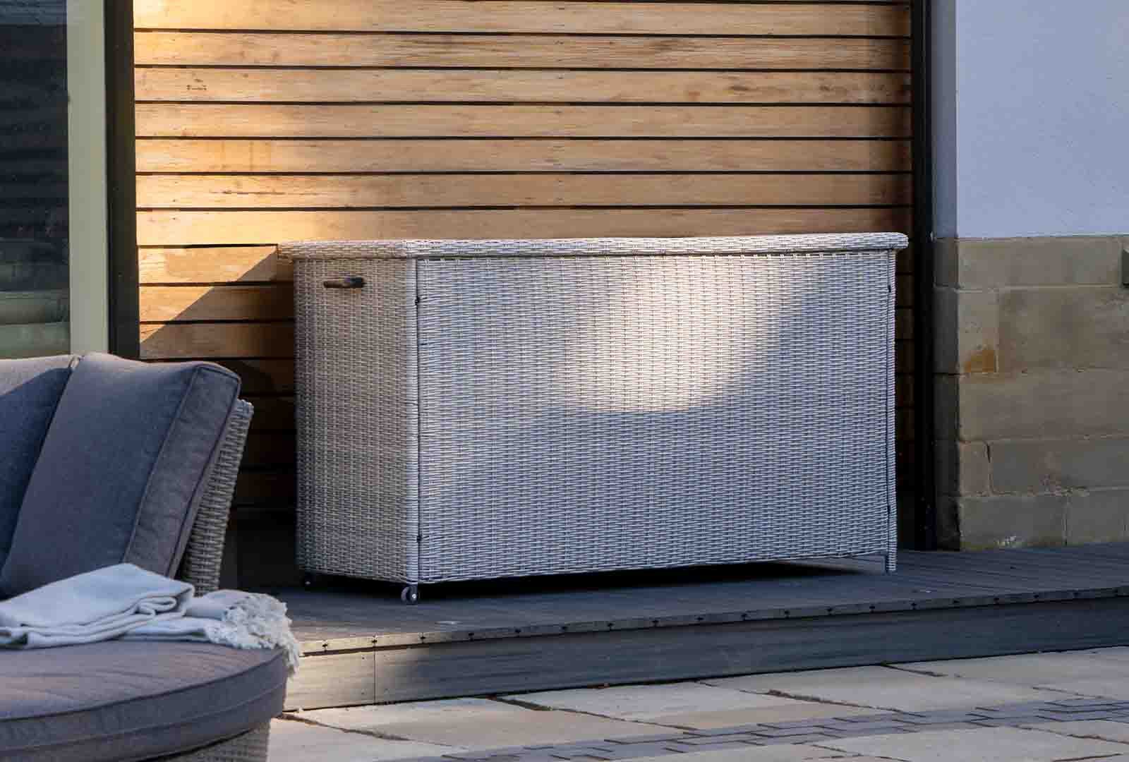 Keep your garden space tidy and stylish with the Slate Grey Outdoor Storage Box—a generous, waterproof garden storage box made from durable synthetic rattan. Designed to complement your outdoor furniture, it offers a smart solution for cushion storage without compromising on looks.