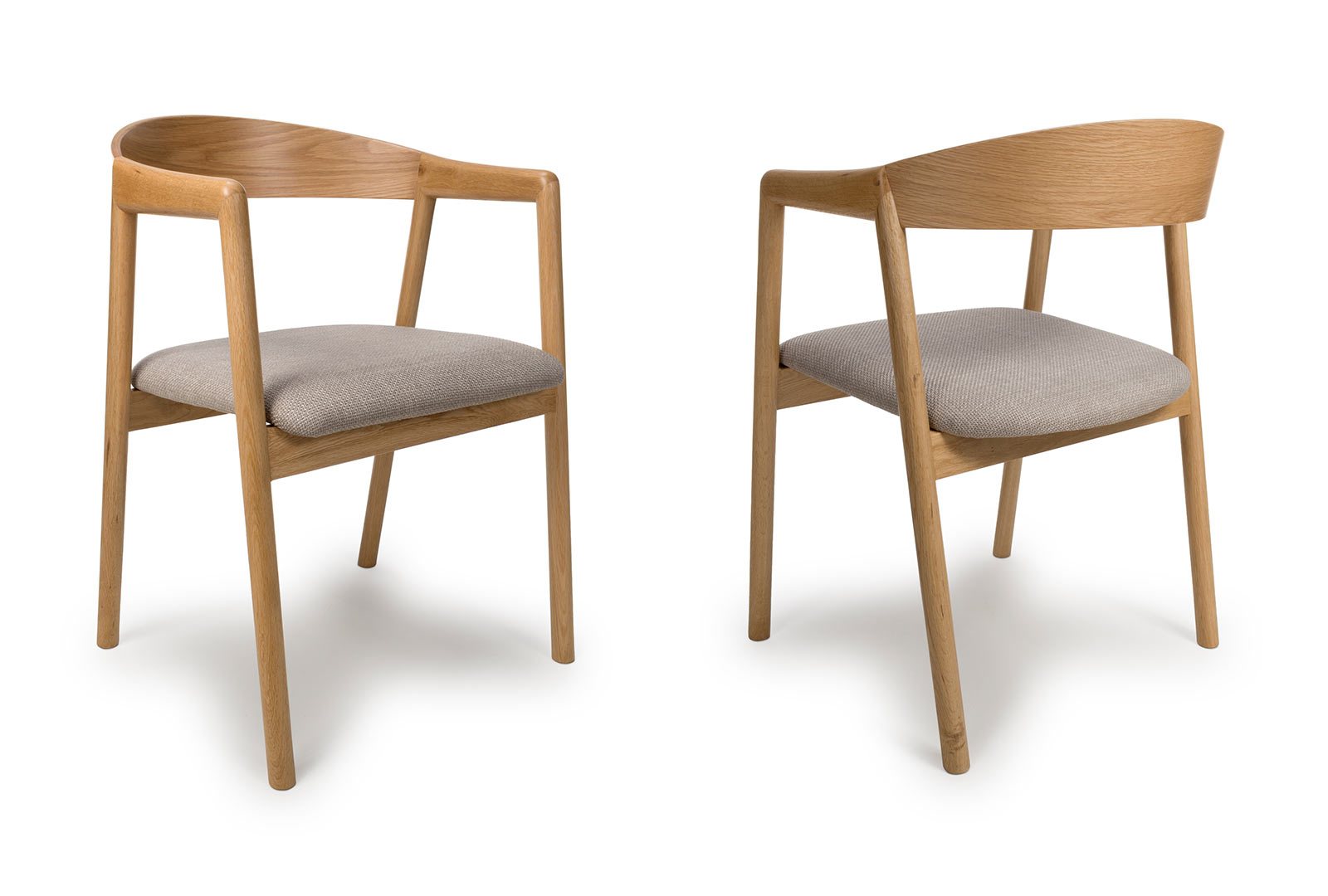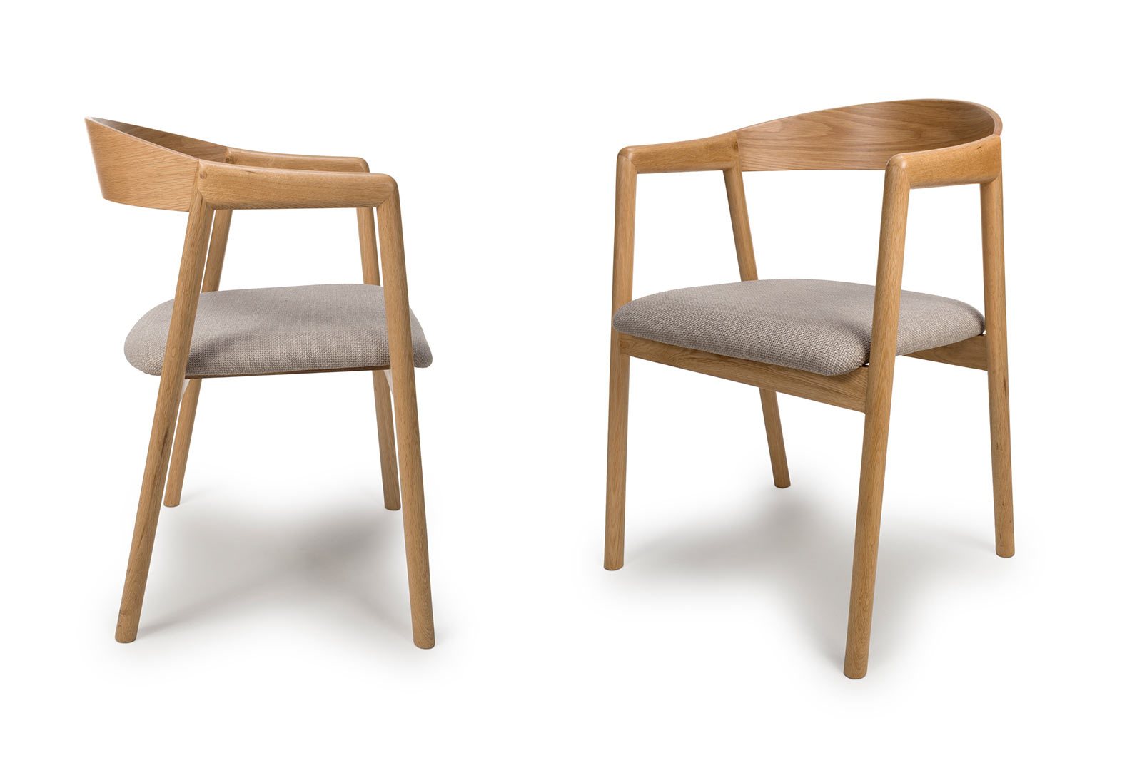 Low Carver Dining Chair features a beautiful ergonomic curved back shape and a soft woven seat pad in grey fabric.