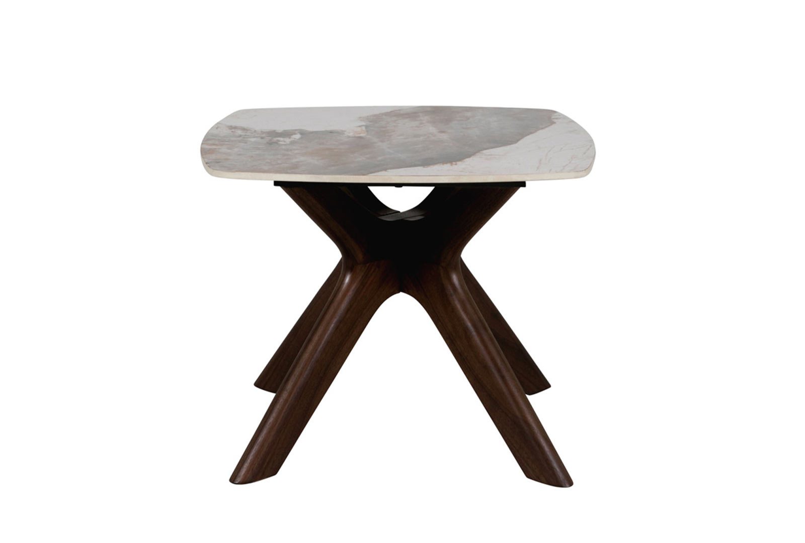 The Arcadia Dining and Occasional Range is an uncomplicated yet timeless collection suitable for both traditional and modern living spaces, featuring a sintered stone top with walnut veneer on solid birch legs.