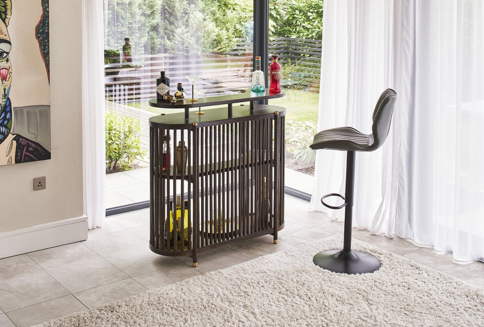 Add an exquisite touch to your living space with the Aron Furniture range. Featuring a rich walnut finish enhanced with antique brass trim. This combination brings timeless elegance and sophistication to any room.