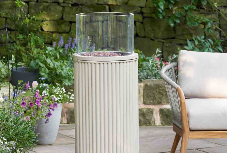 Sleek and sculptural, this standing gas patio heater adds a beautiful touch that brings warmth and atmosphere to your evening garden space. Standing over a metre tall, its ribbed pillar design creates a striking focal point—perfect for patios, terraces, or tucked beside a lounge set.