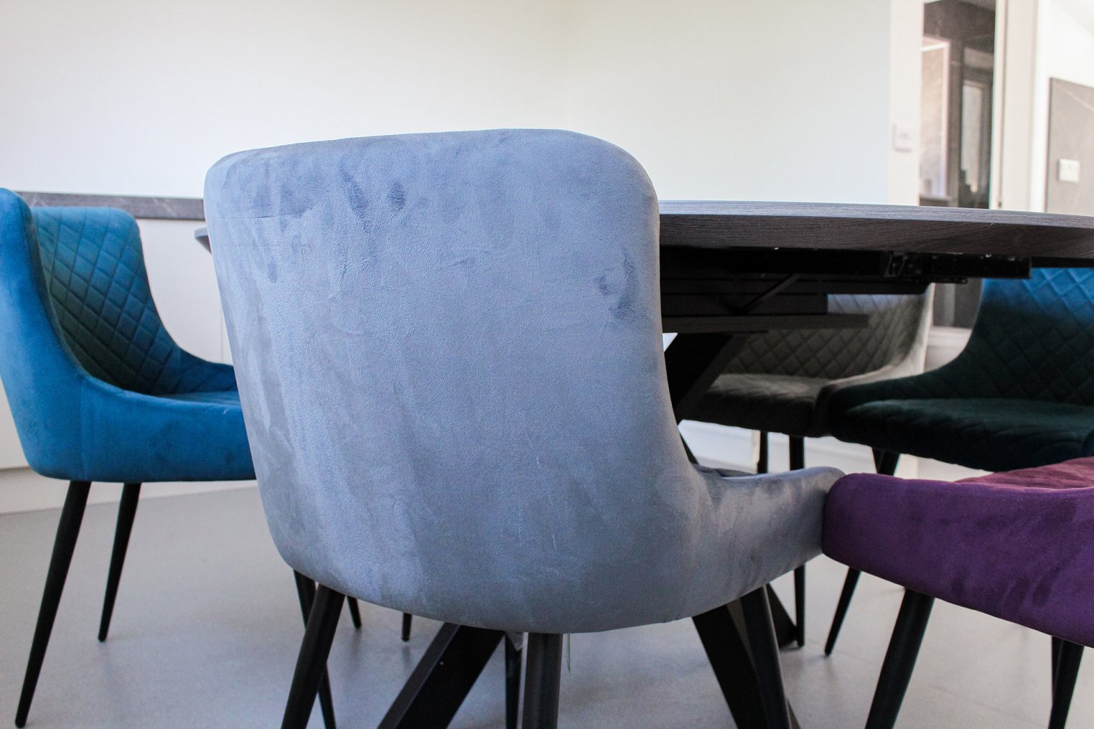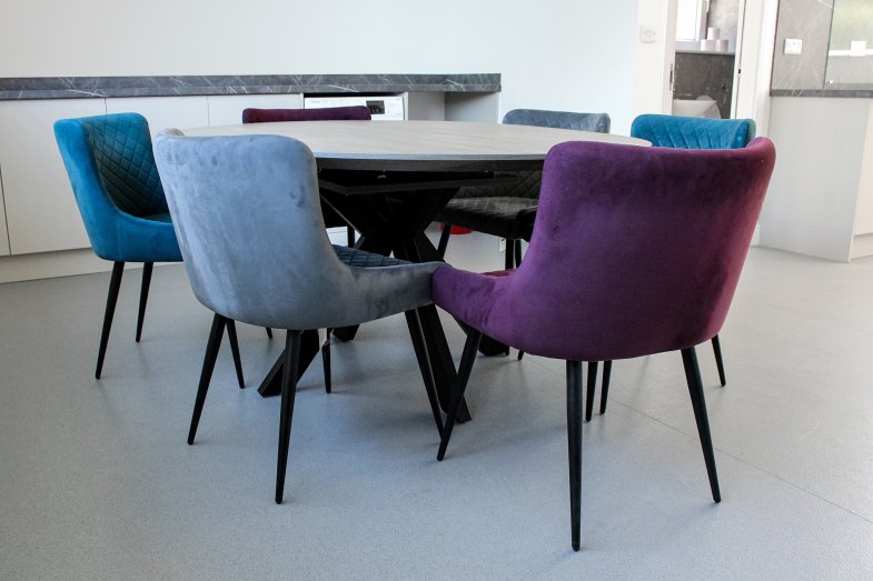 To help bring this vision to life, Loom Loft donated two Halken Sofas, a matching armchair, a footstool and two rugs, creating a warm and relaxing space for children and carers to spend time together. For the dining area, the home received an extendable Madrid Round Dining Table, paired with six Morden Dining Chairs in a vibrant mix of blue, mulberry, and grey — thoughtfully chosen to foster connection and comfort around mealtimes. These considered pieces are helping transform a blank canvas into a truly welcoming home.