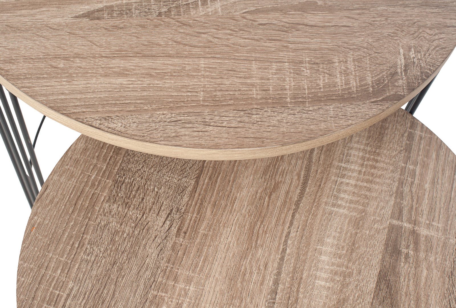 Perfectly proportioned, sleek modern tables with oak wood or white marble effect top and contrasting black metal legs.