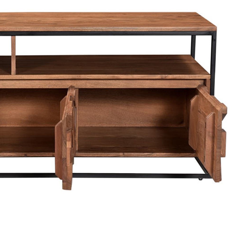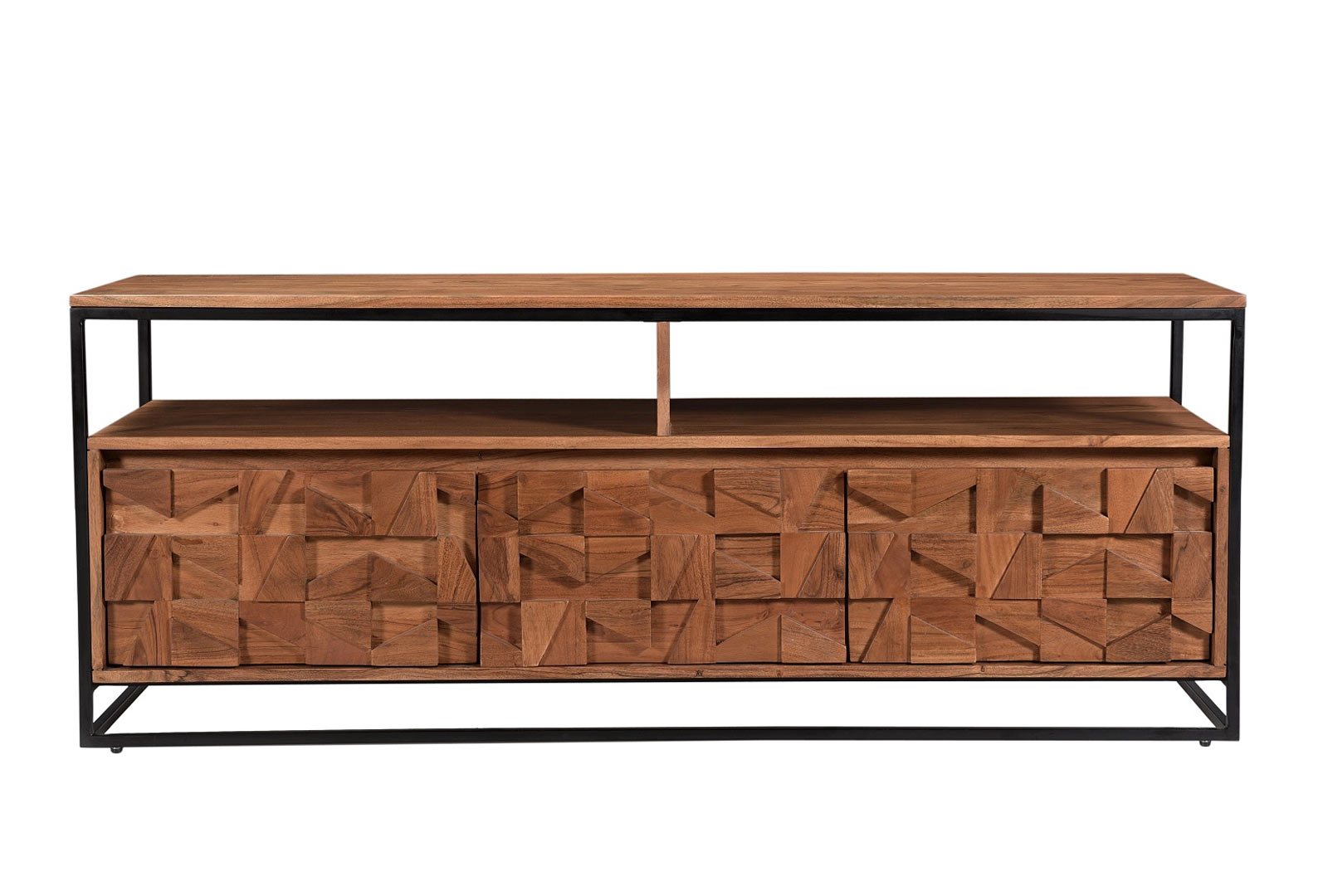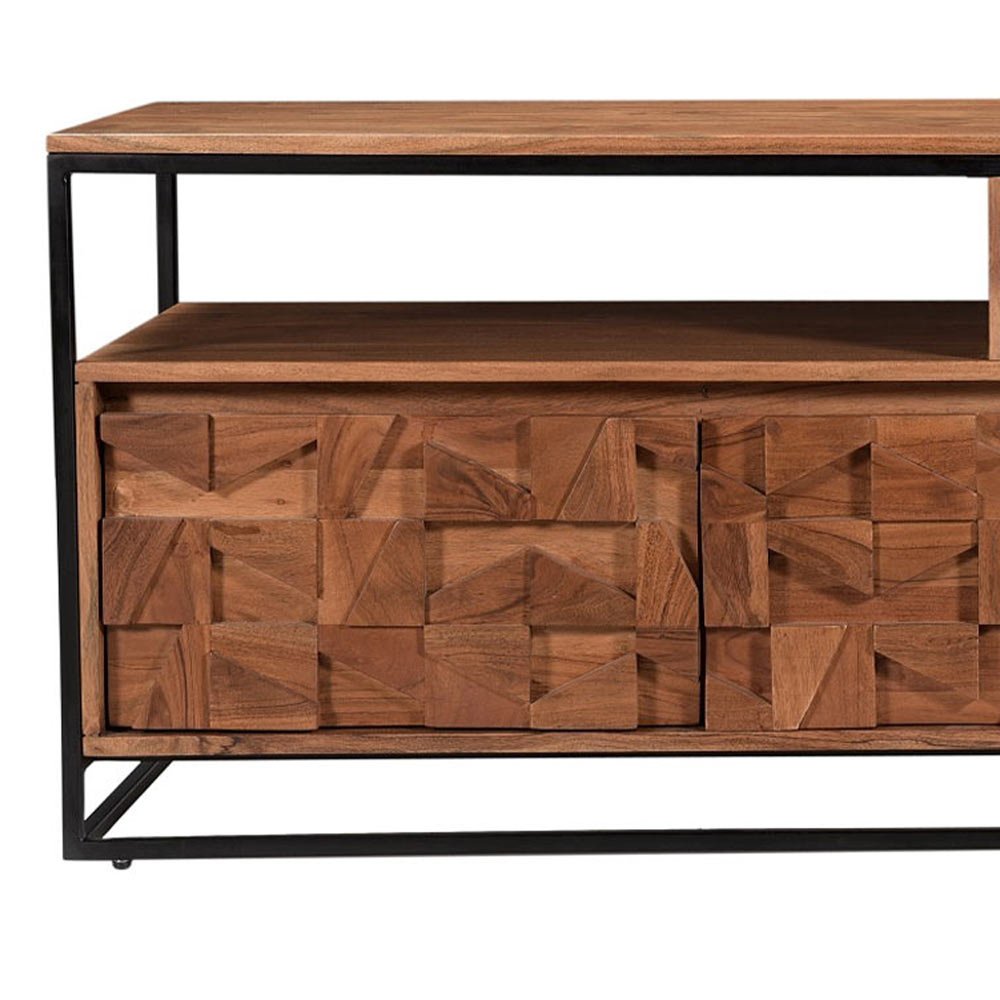The Atticus range has a cool loft living vibe with its bold metal framing and carved Acacia wood. The block design is carved in such a way to offer different levels and shapes to allow the light to highlight different sections creating a unique conversation piece.
