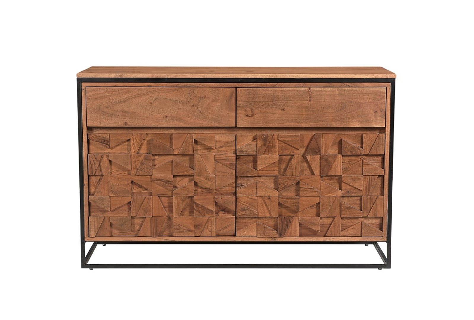 The Atticus range has a cool loft living vibe with its bold metal framing and carved Acacia wood. The block design is carved in such a way to offer different levels and shapes to allow the light to highlight different sections creating a unique conversation piece.