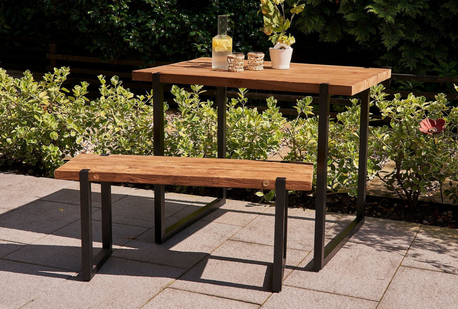 With solid reclaimed teak tops sitting on black inset frames, the Barber range is the essence of simplicity and style.