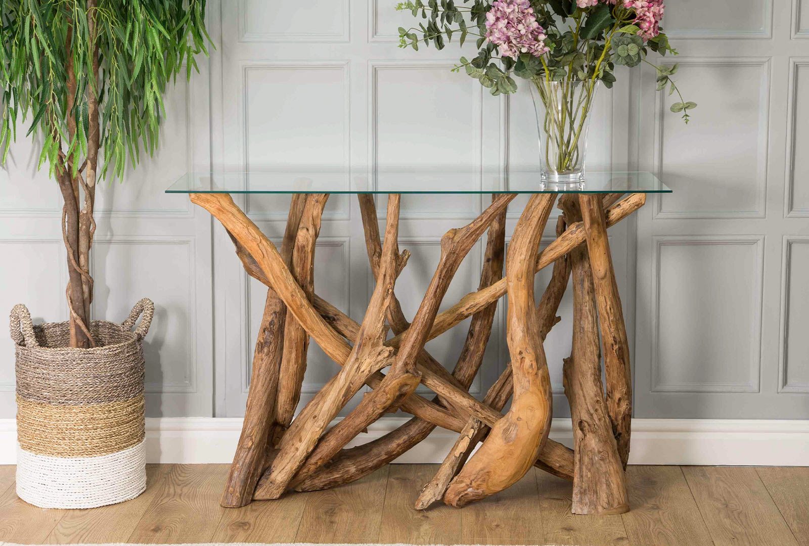 Add natural luxury to your living space with this stunning range of occasional and dining pieces, made from twisted Branchwood Teak with a tempered glass top finish.