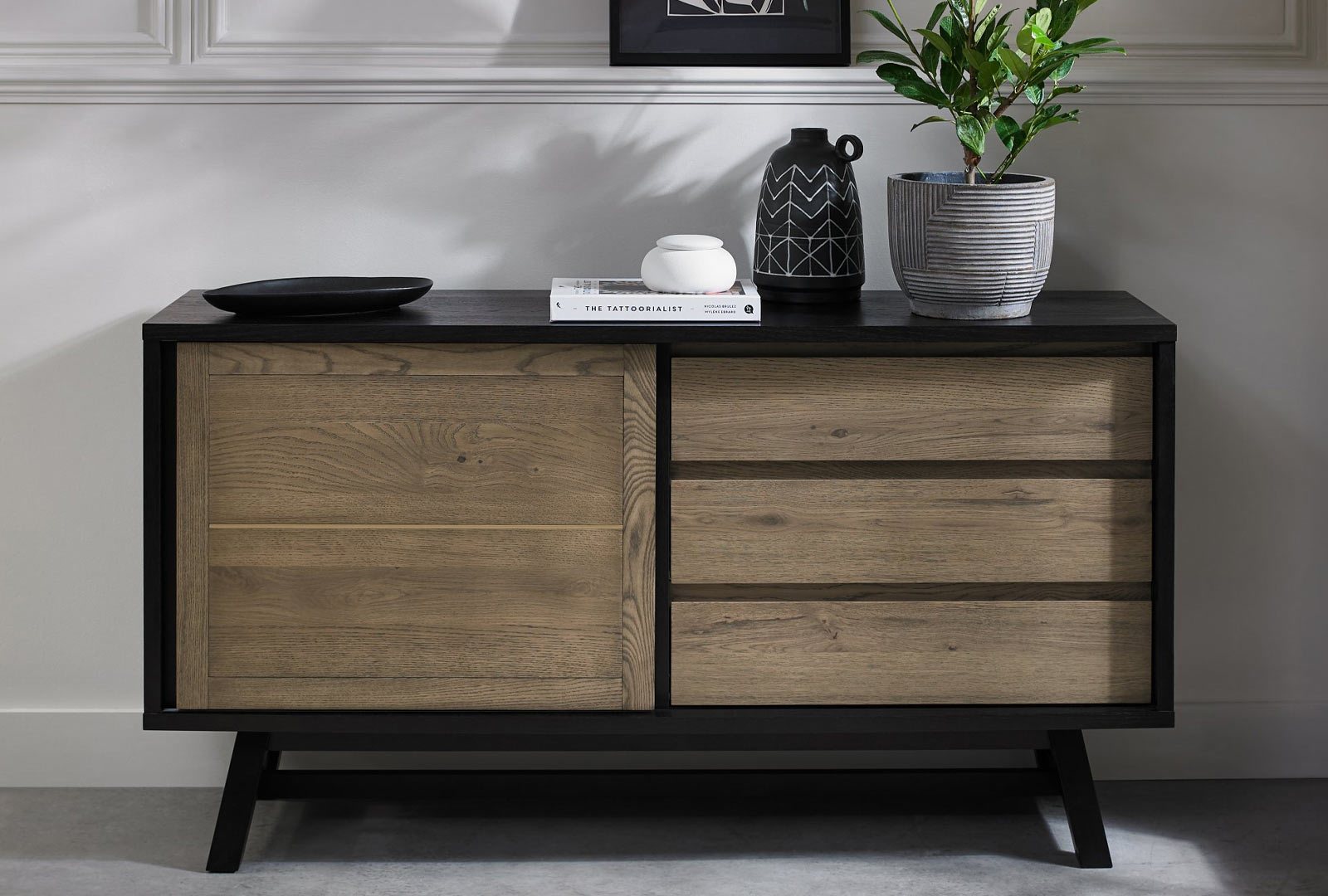 The Canyon Dining and Occasional Range combines traditional form with a contemporary edge. Laminated oak and oak veneer table tops are combined with solid ash frames making a bold statement in your living space. The occasional pieces offer soft-close drawers and sliding door mechanisms for that extra refinement and the matching dining chairs and armchairs are available in a range of sumptuous velvets, mottled grey fabric or faux leathers to suit any dining space. To add to the versatility of this range the wood is available in either a weathered oak with peppercorn frame or rustic oak finish.