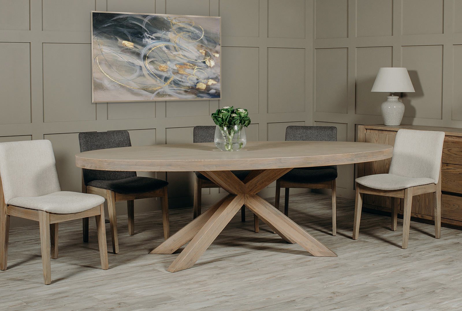 The Farrow Collection boasts contemporary design and durability, crafted with oak veneer and solid oak legs. An attractive and versatile range, you can mix and match for a modern corner dining style or choose the more traditional dining arrangement - with the option of complementing your look with the matching occasional pieces.