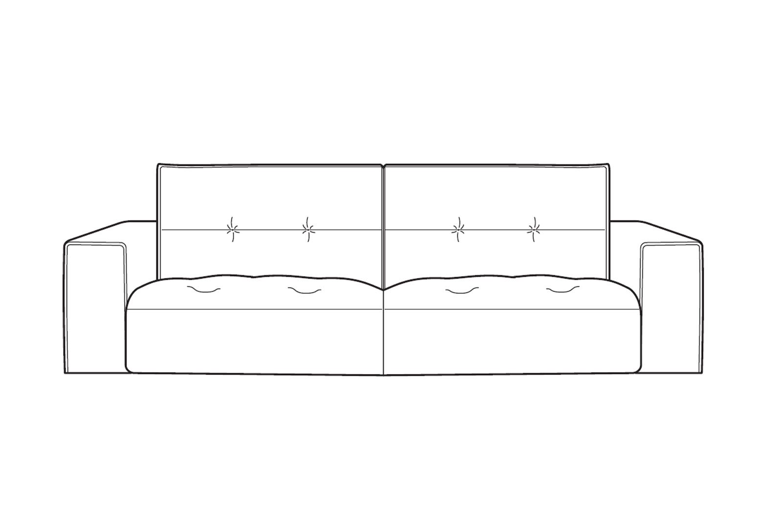 Classic button-tufted cushions in fibre-wrapped foam deliver a plush, pillowy sit with an enveloping feel. Boxy arms and crisp angles create a strong architectural profile, softened by a relaxed silhouette and concealed feet for a light, floating look.