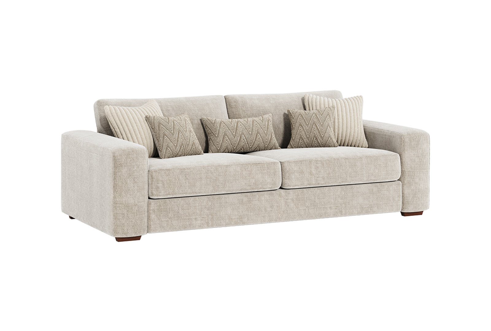 - Upholstered in soft textured chenille fabric, complemented by a mix of cosy cord and chevron patterned cushions (inclusive)