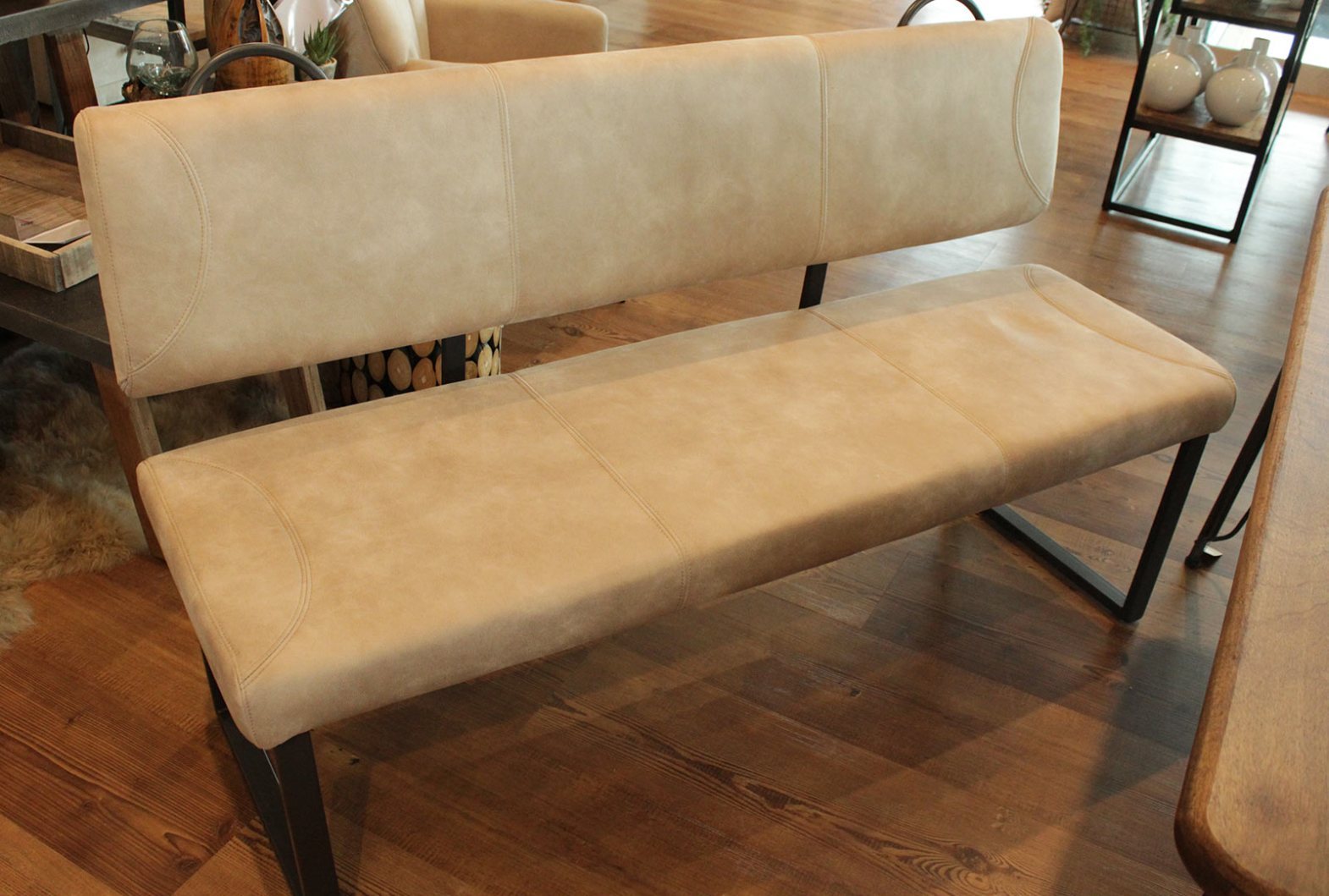 Images show Henry Back Seat Bench in Vegan Leather Chestnut, Vegan Leather Tan, and Vegan Leather Grey colours.