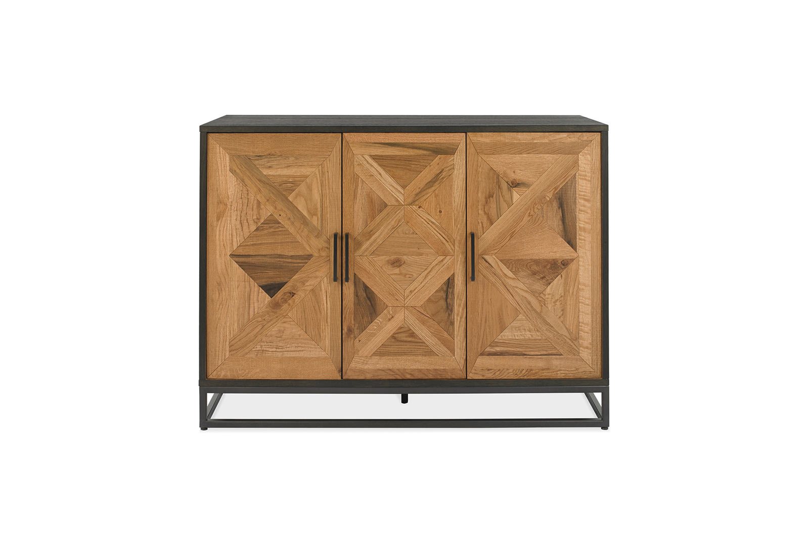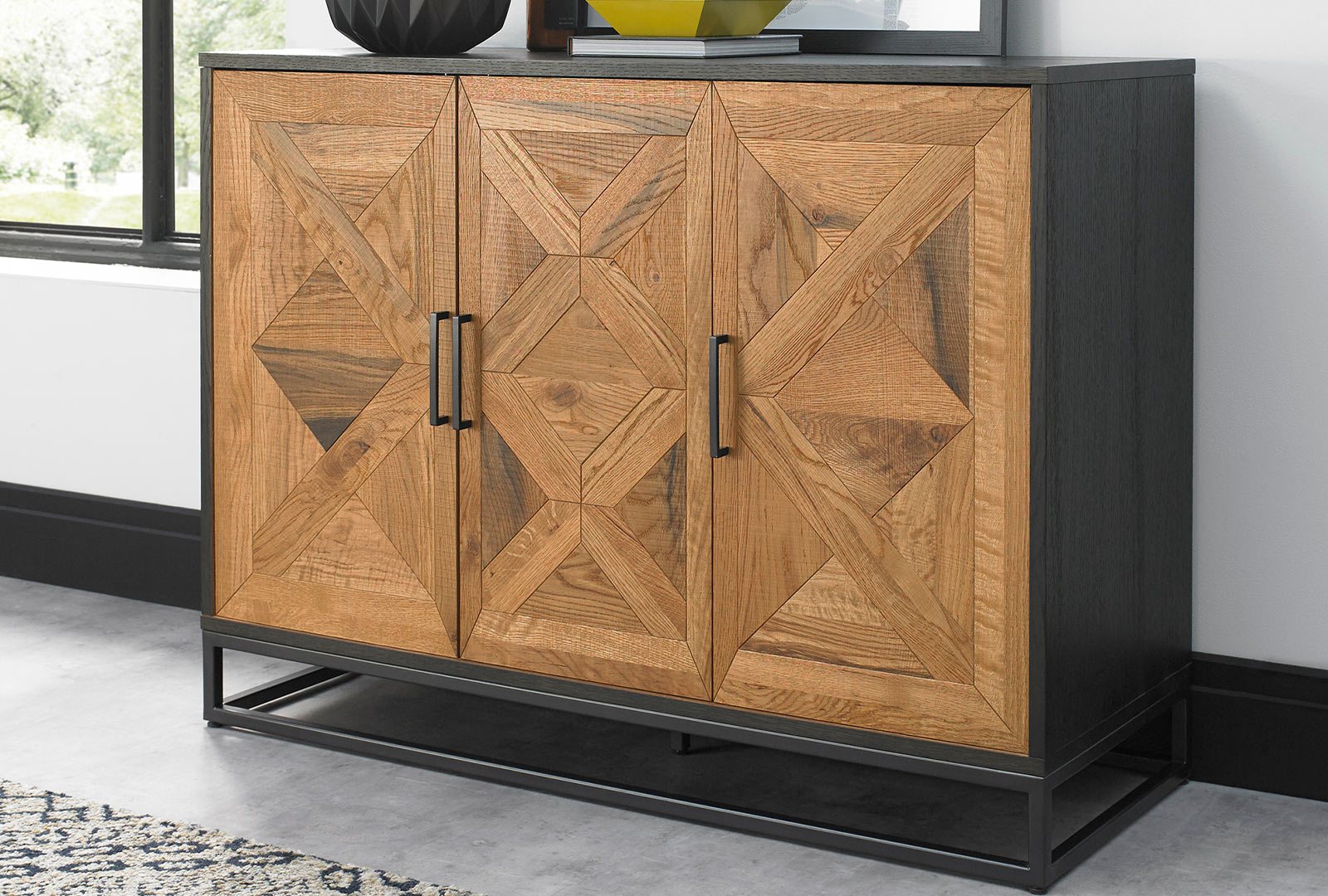 The Ingot Collection showcases a bold design, featuring rustic oak marquetry tops paired with a wire-brushed oak veneered frame in a 'peppercorn' finish. Its welded black powder-coated metal base lends an on-trend industrial touch whilst each handcrafted top is wire-brushed and distressed, highlighting the beautiful, varied grain of oak for a rustic and tactile appeal.