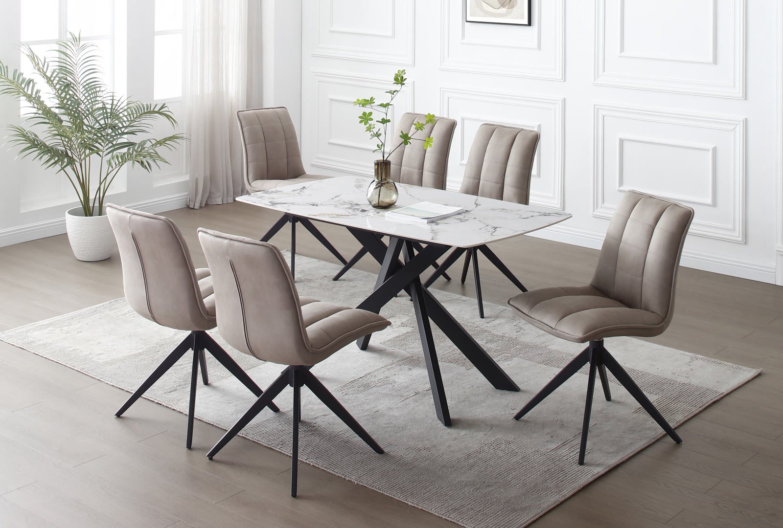 The Lindell Collection combines a minimal aesthetic with comfort and sophistication with its soft taupe fabric upholstery and sleek ceramic tables, resting on brushed black iron legs. Blending elegance and practicality, this range is a perfect addition to the modern home.