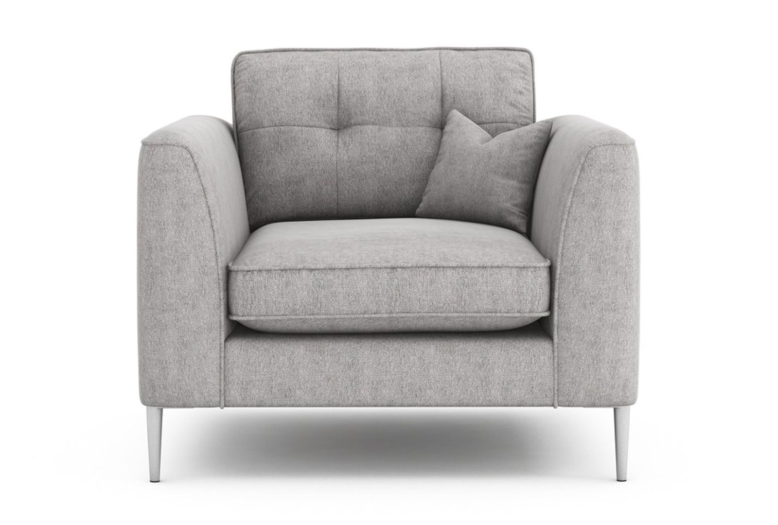 - Arms: A modern chunky arm profile, upholstered with foam