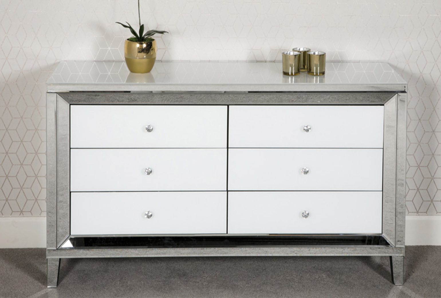 Add a hint of decadence to your scheme with the addition of the versatile Luson range of white gloss and mirrored pieces. Attention to detail has been paramount in the design and construction of these stunning pieces with the inclusion of bevelled edges, crystal handles and glass tops for durability.