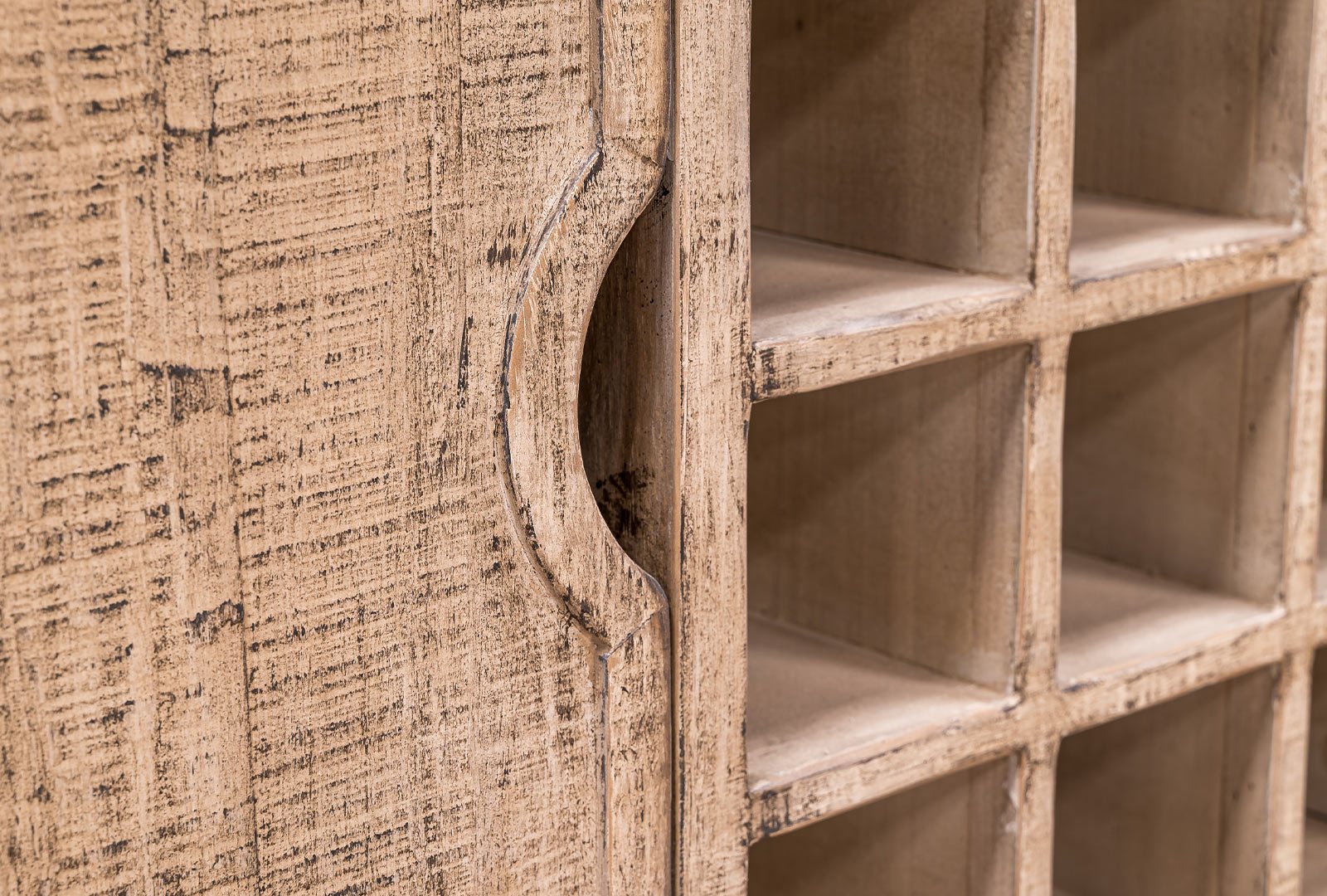 - Wine rack sideboard made from sustainable reclaimed pine