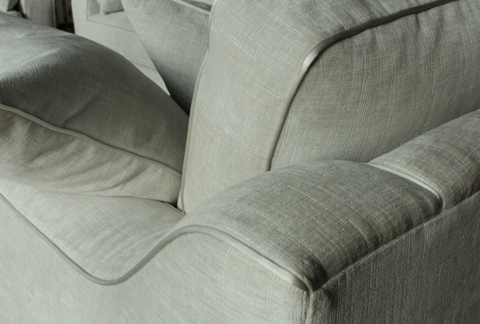 - Corner Sofa and Snuggler in Zelda Oyster with Contrast Piping (Grade C) - Standard Back Style