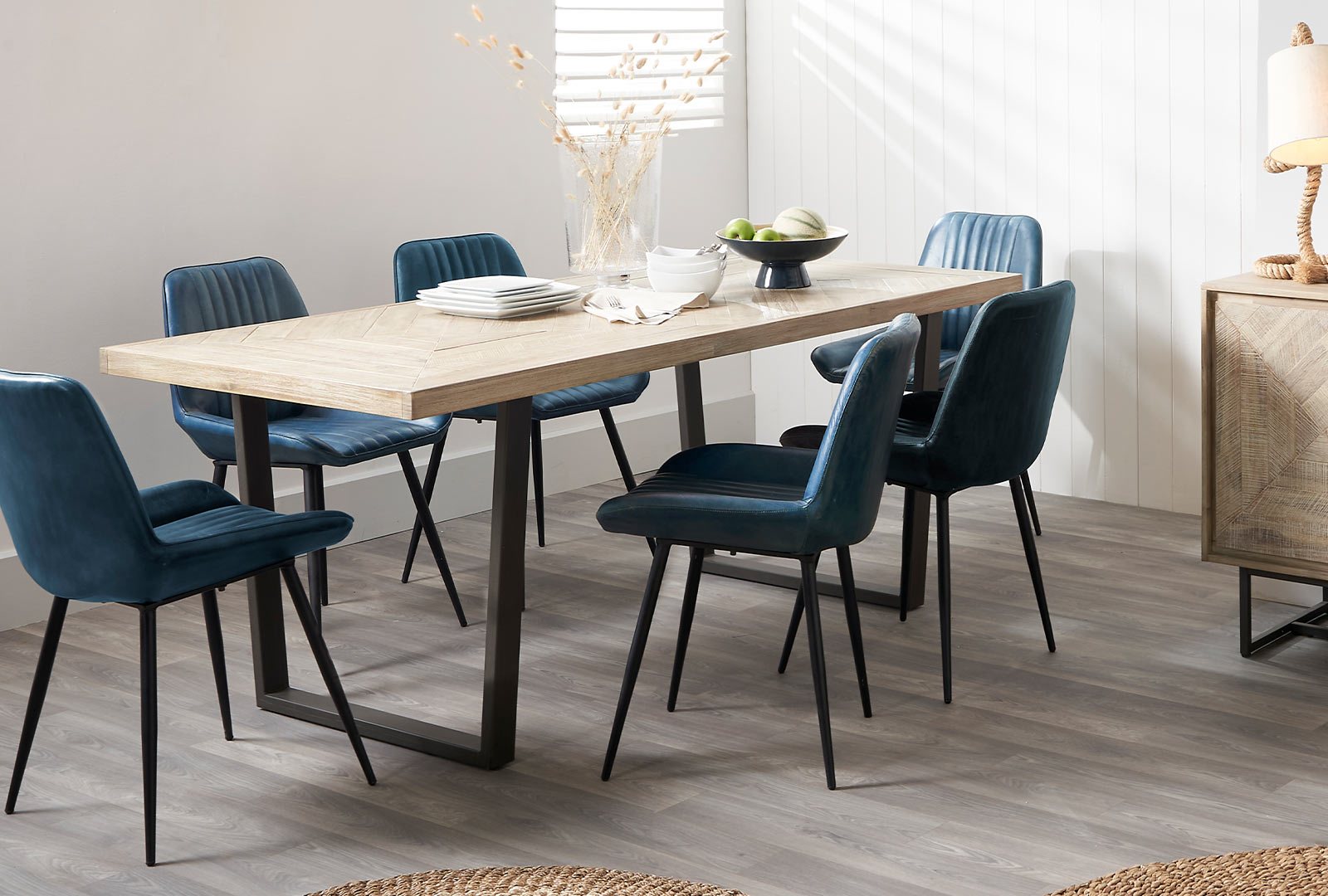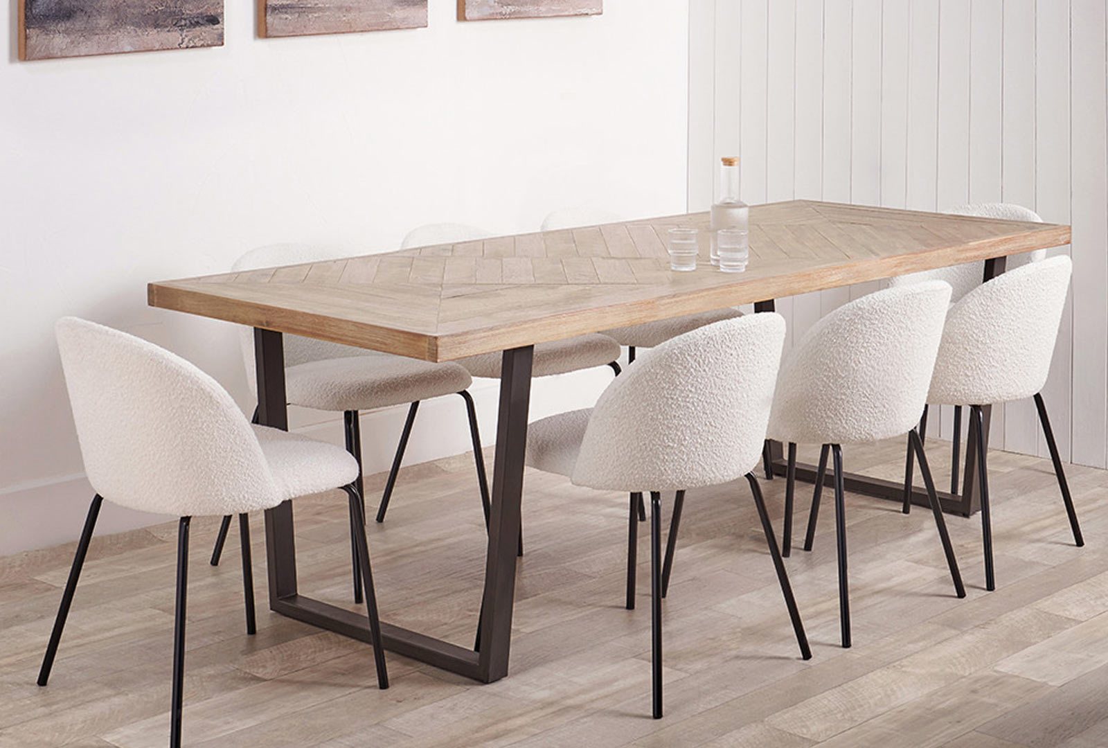 The Micah Dining and Occasional range is the epitome of Scandi styling. With acacia textured wood, panelled detailing and industrial leg in dark metal.