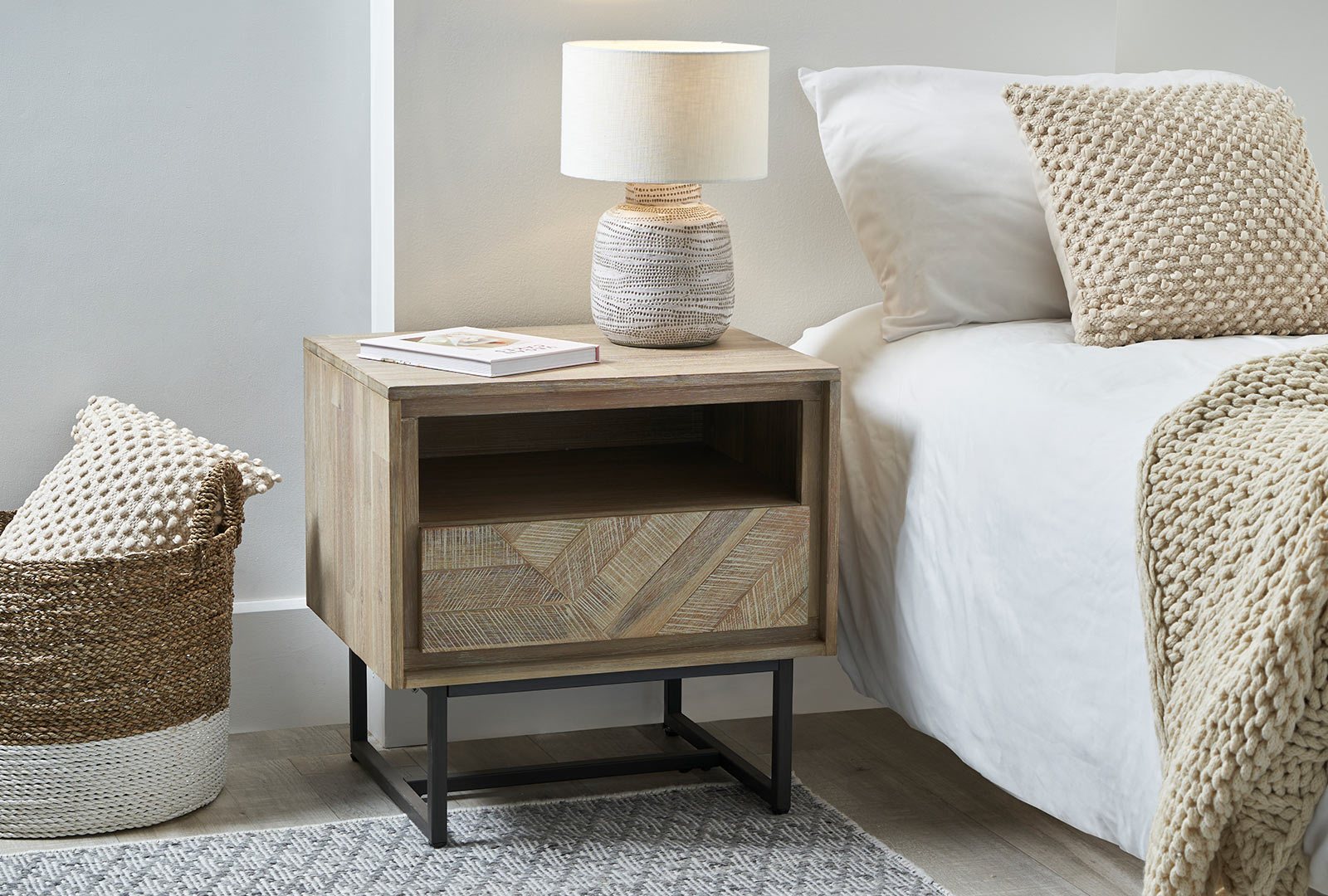 The Micah Dining and Occasional range is the epitome of Scandi styling. With acacia textured wood, panelled detailing and industrial leg in dark metal.