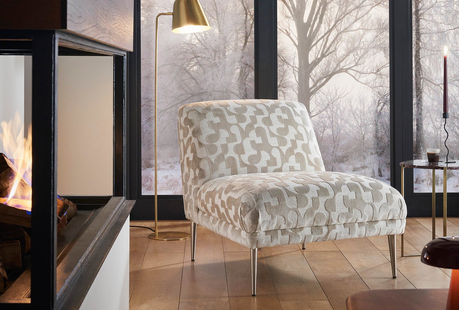 Upholstered in your chosen premium fabric, including eye-catching patterns, and finished with polished chrome legs for a clean, elevated edge. This accent chair for living rooms is handcrafted in the UK and makes a versatile addition to your home.