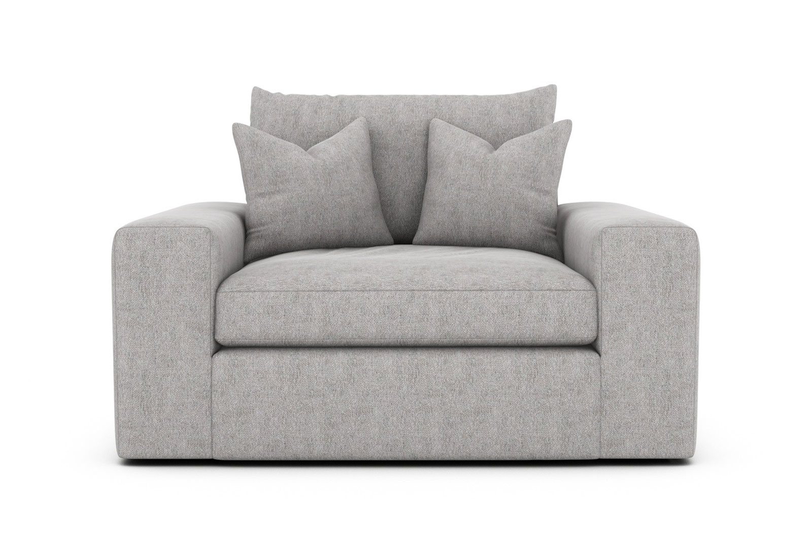 A feather-topped foam core delivers cloud-like comfort with a sink-in, bounce-back feel, while matching feather scatter cushions add a cosy, styled finish. The low-slung profile pairs chunky box arms with deep, wide seats, softened by gently rounded edges and plump, fibre-filled backs.