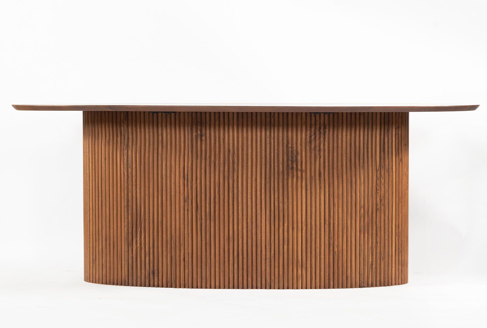 Crafted using Acacia Wood and black powder coated Iron, the Pablo Dining and Occasional Collection boasts an elegant curved design with warm tones and fluted styling.
