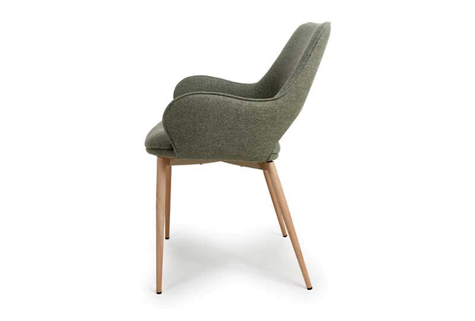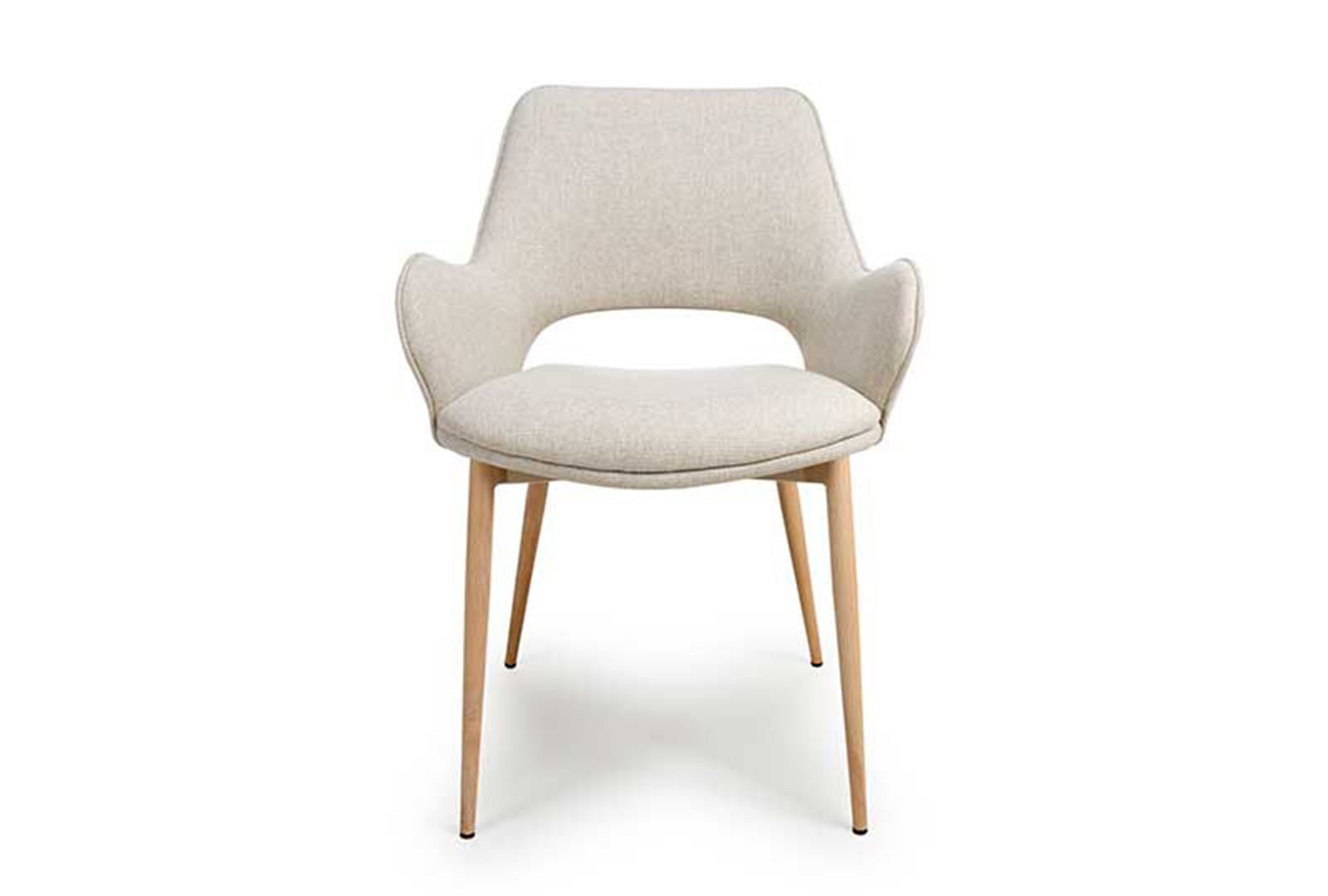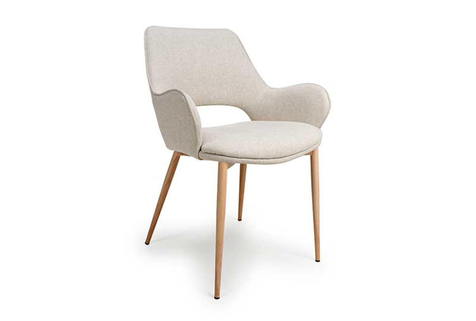 The Shellie Dining chair combines comfort, style and practicality - a must for the modern household. With gentle padding throughout, supported with metal legs made with a wood effect finish and upholstered in Easy Clean fabric.
