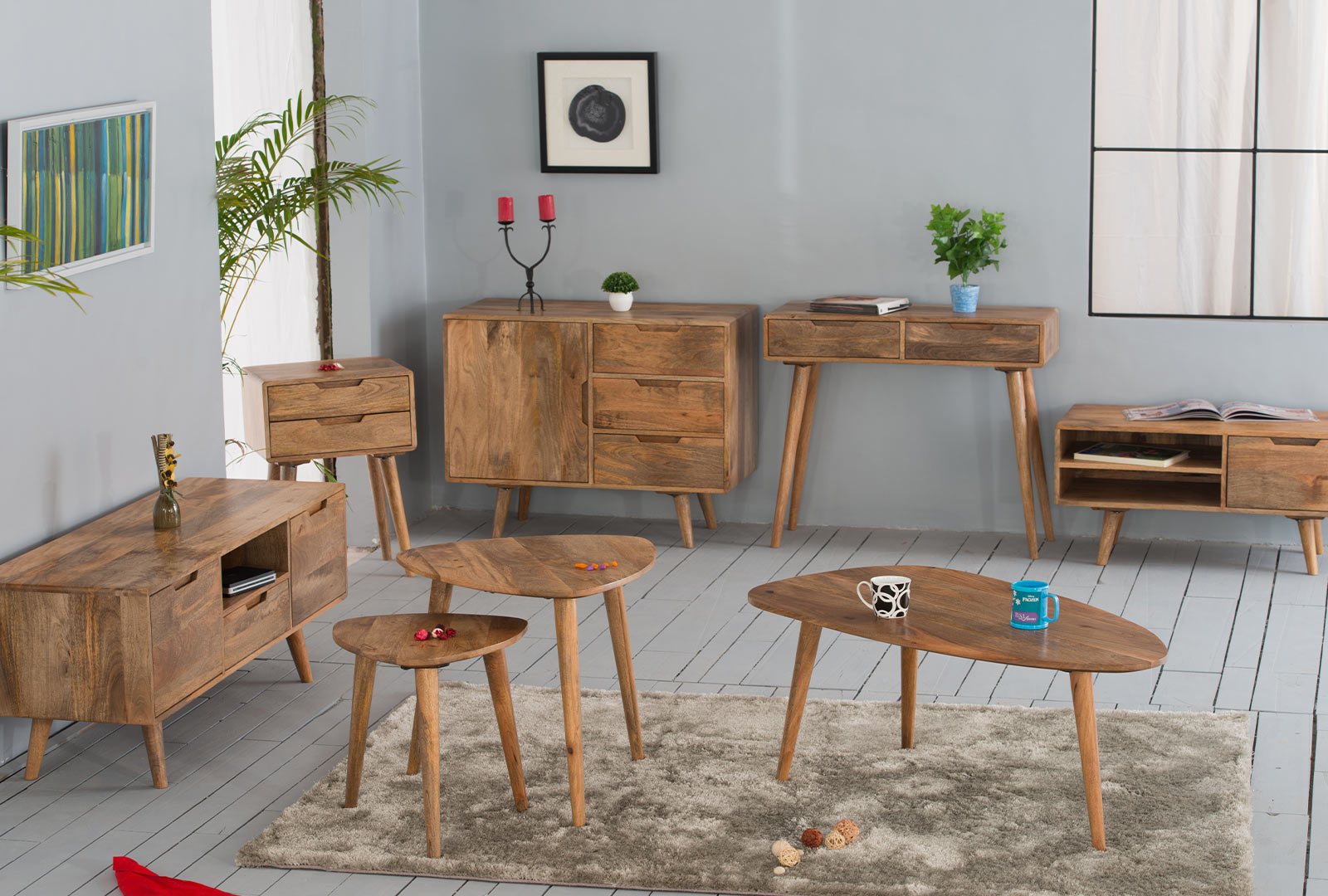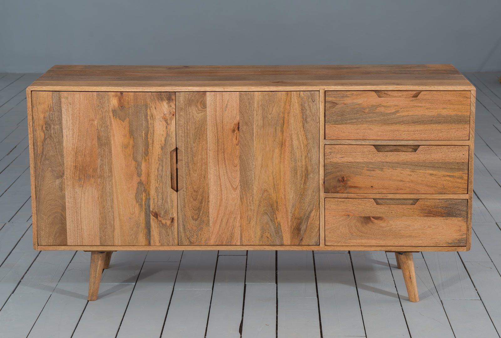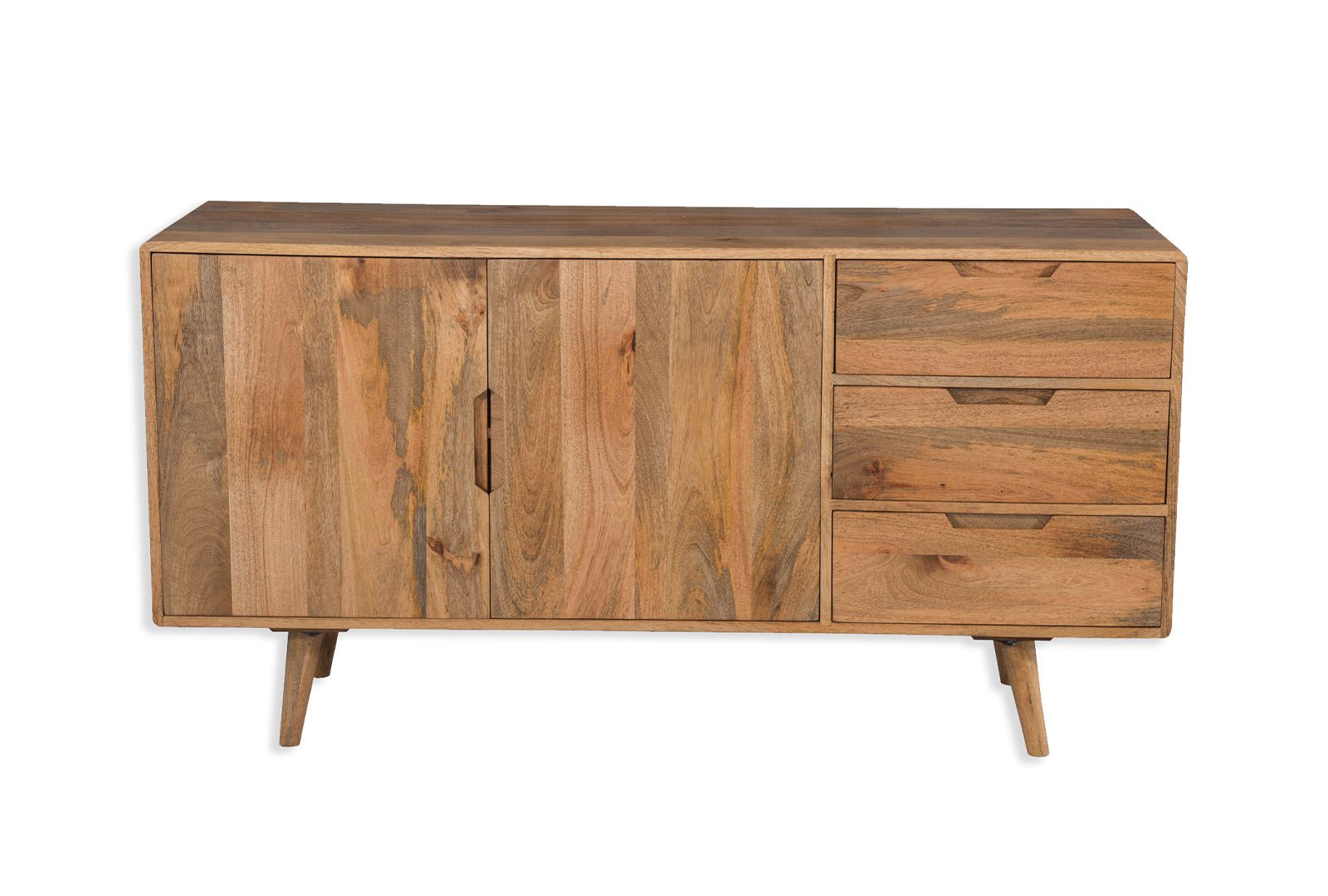 Solid mango wood with Scandi inspired styling and sleek turned legs.