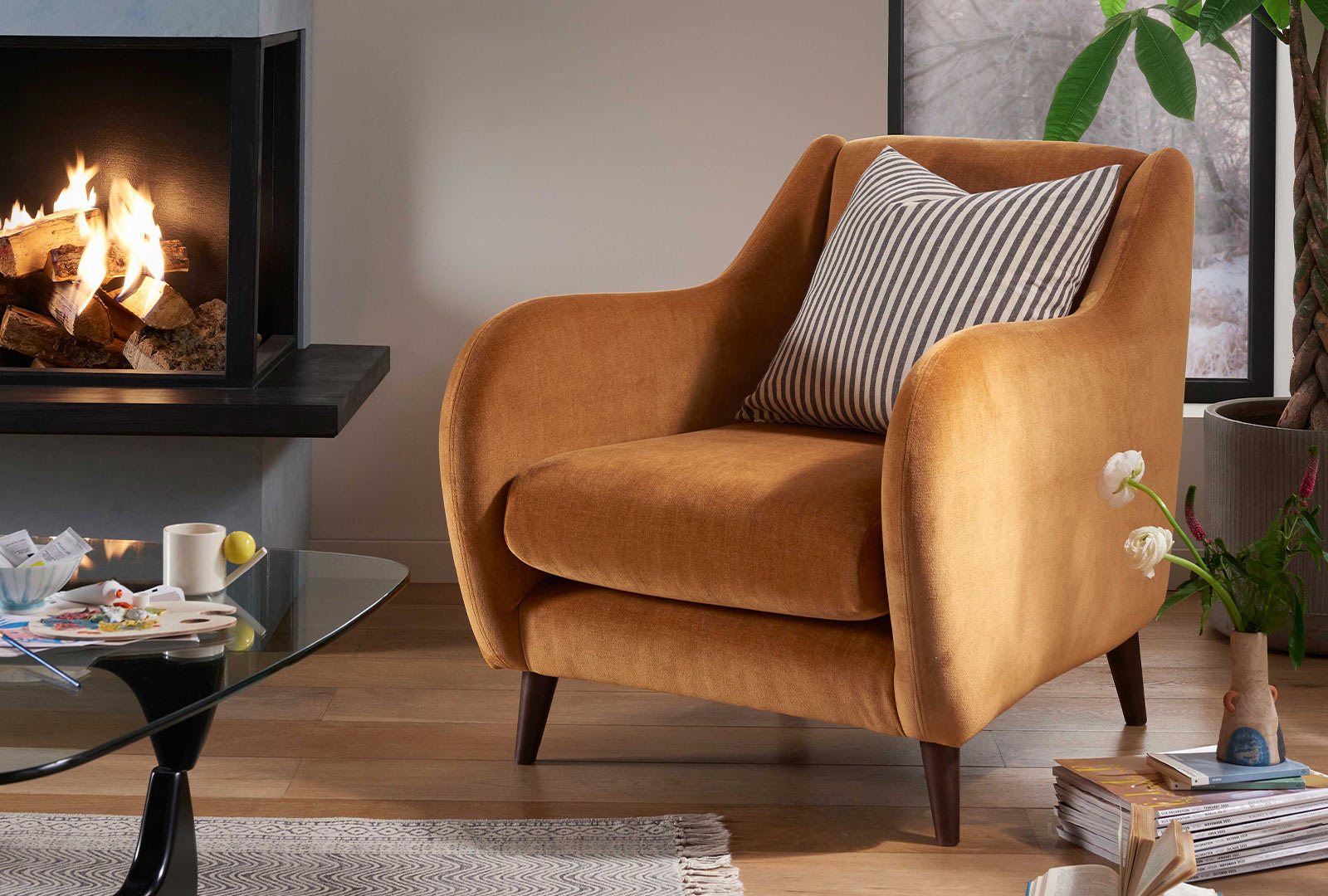 An appealing accent chair, available in a choice of sumptuous velvets, fabrics and patterns.