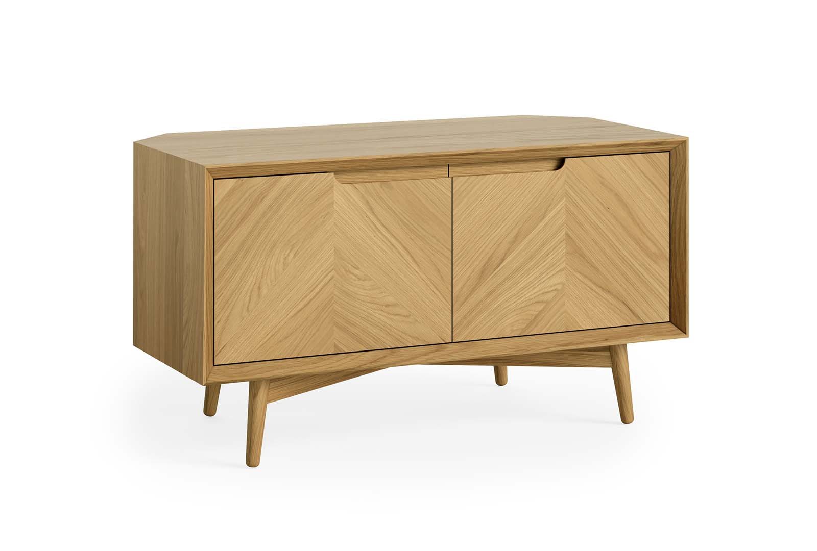 This beautifully crafted cabinet range embodies clean Scandinavian design, featuring a light wood finish, refined chevron accents and gently curved tops that add subtle texture and timeless sophistication.