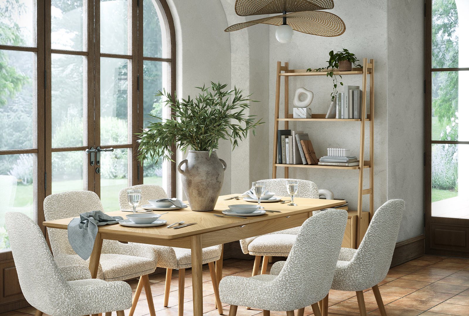This beautifully crafted cabinet range embodies clean Scandinavian design, featuring a light wood finish, refined chevron accents and gently curved tops that add subtle texture and timeless sophistication.
