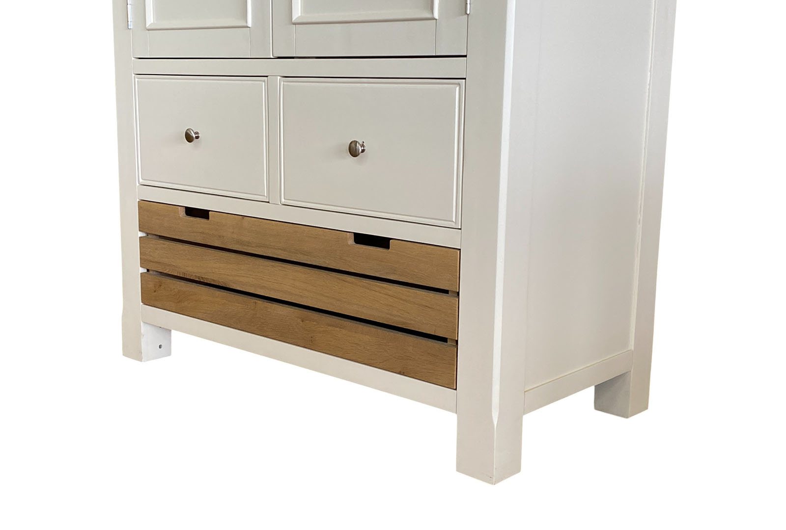 Framed panel detailing, softly rounded edges and classic metal handles add subtle character, while the oak tops introduce warmth and texture that only improves with time.
