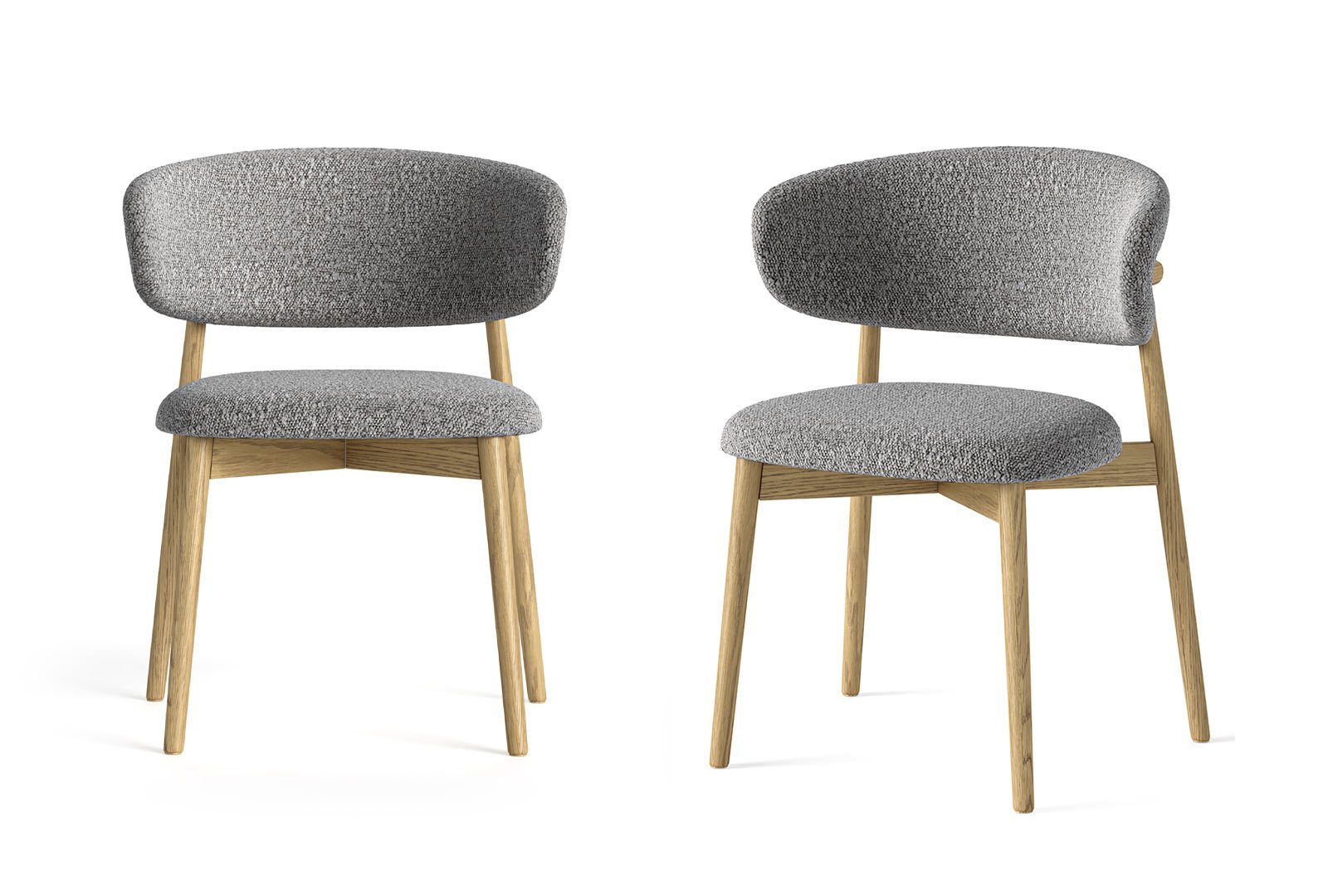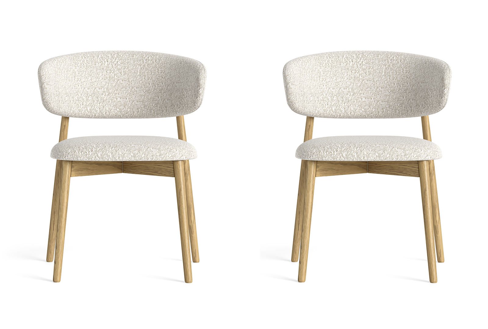 Crafted for contemporary dining, these chairs blend soft, tactile boucle with smooth oak-toned legs. The curved backrest offers supportive comfort, while the minimalist frame ensures a light, sculpted profile. A refined pairing of texture and tone, ideal for stylish, everyday living with a modern aesthetic.
